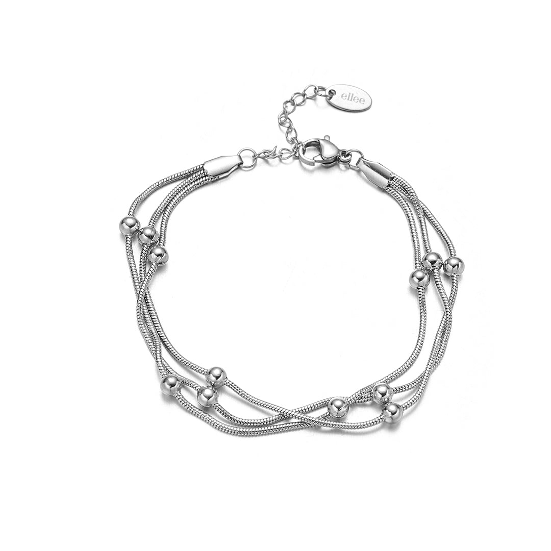Questo bracciale è un accessorio raffinato e versatile, perfetto per aggiungere un tocco di stile a qualsiasi outfit. Il gioiello è caratterizzato da un elegante design a tre fili, impreziositi da piccole sfere disposte in modo armonioso lungo tutta la lunghezza. Grazie alla pratica chiusura a moschettone e alla catenina di estensione, il bracciale è regolabile per adattarsi con facilità a diverse misure di polso.