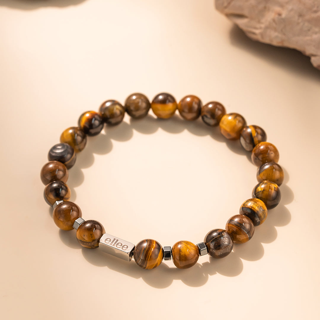 Bracciale elasticizzato realizzato con ematite e occhio di tigre