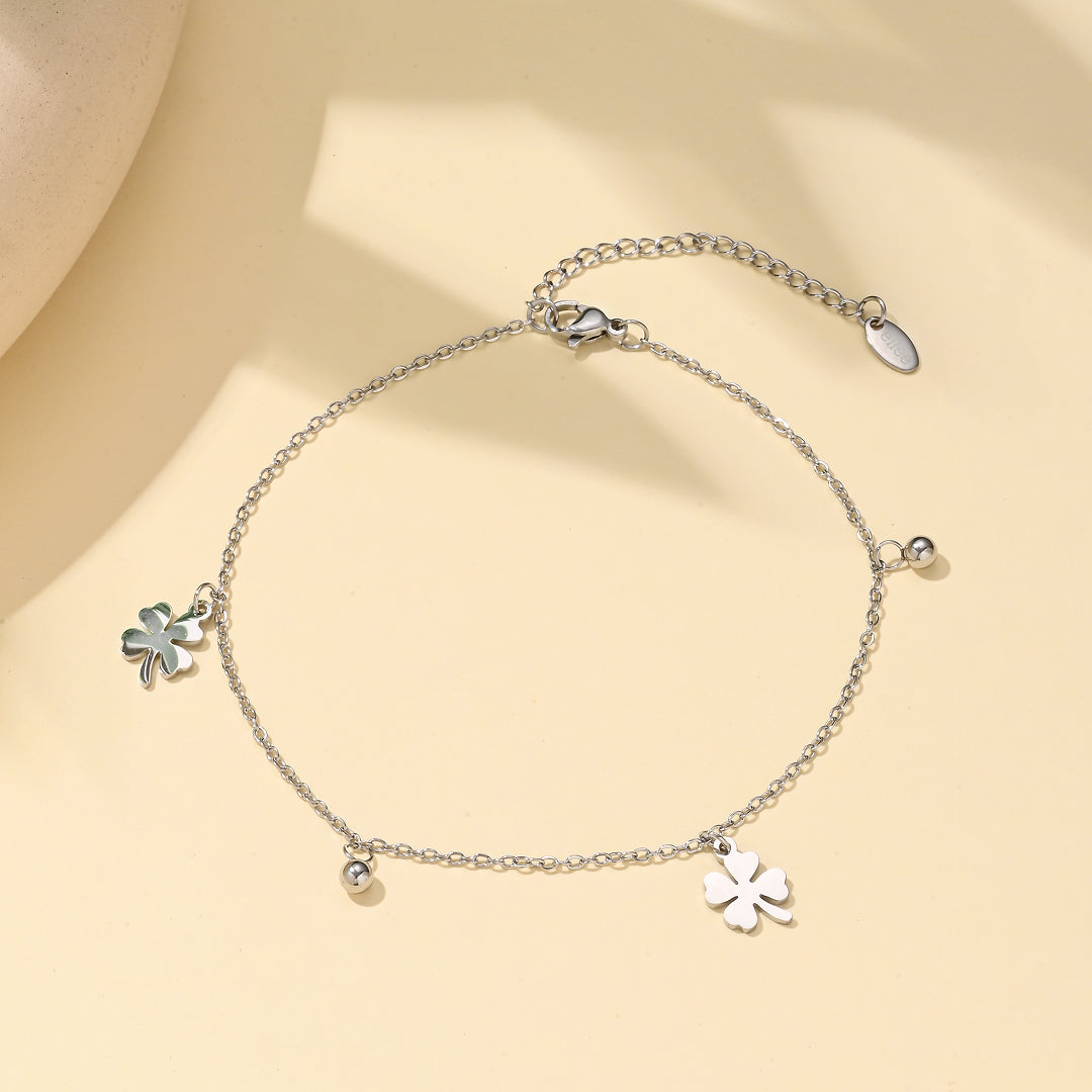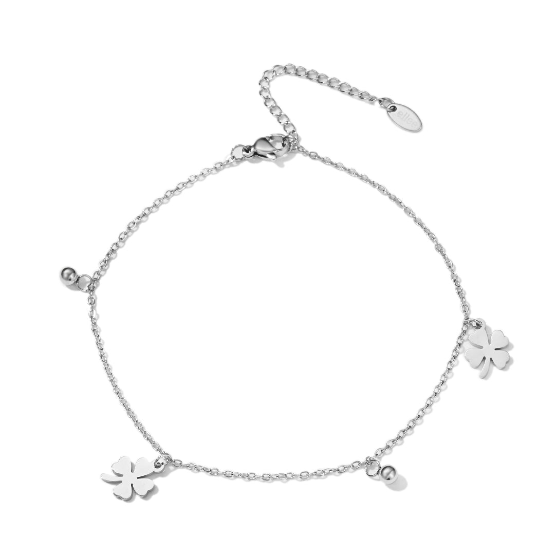 Lasciati incantare da questa delicata cavigliera, un sussurro di eleganza al tuo passo. La sottile catena abbraccia la caviglia con grazia, mentre tre scintillanti quadrifogli danzano ad ogni movimento, portando con sé un augurio di fortuna. Piccole sfere catturano la luce, aggiungendo un bagliore discreto. Ideale per le serate estive o per illuminare il tuo stile quotidiano con un tocco di magia.
