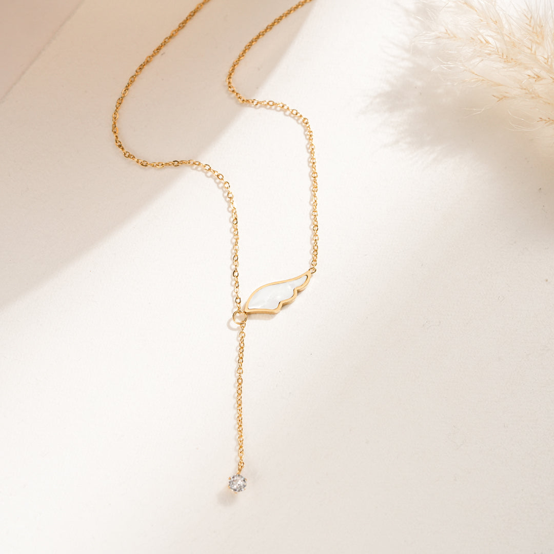 Questa collana è un accessorio raffinato e versatile, perfetto per aggiungere un tocco di stile spirituale e moderno a qualsiasi outfit. La Collana Angel è composta da una sottile catena in acciaio che presenta un elegante pendente a forma di ala di angelo, simbolo di libertà e protezione.