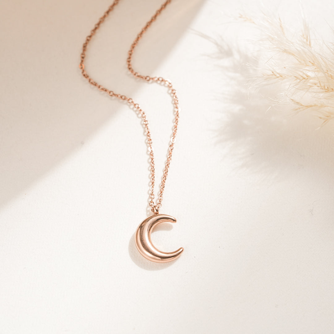Questa collana è un accessorio raffinato e versatile, perfetto per aggiungere un tocco di stile e significato a qualsiasi outfit. La collana è composta da una sottile catena in acciaio inossidabile e da un pendente a forma di mezzaluna.