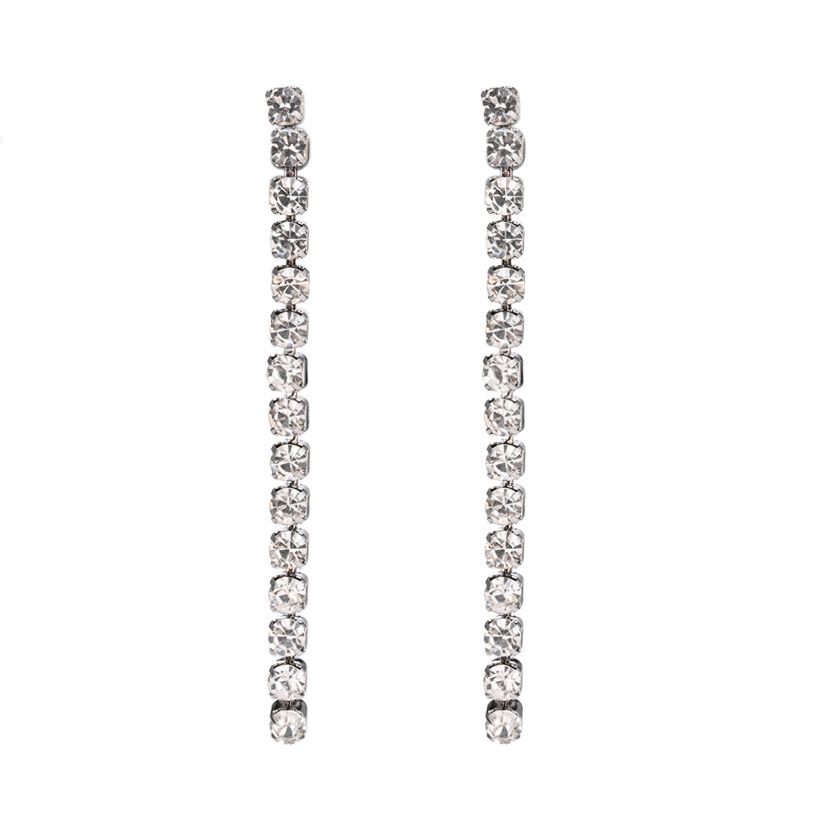 Questi orecchini sono un accessorio raffinato e versatile, perfetto per aggiungere un tocco di stile e brillantezza ai tuoi look più sofisticati. Il design è caratterizzato da una sottile barretta pendente, interamente impreziosita da una fila di luminosi zirconi dal taglio brillante che catturano e riflettono la luce a ogni movimento. Dotati di una pratica chiusura a perno, assicurano una vestibilità leggera e confortevole.